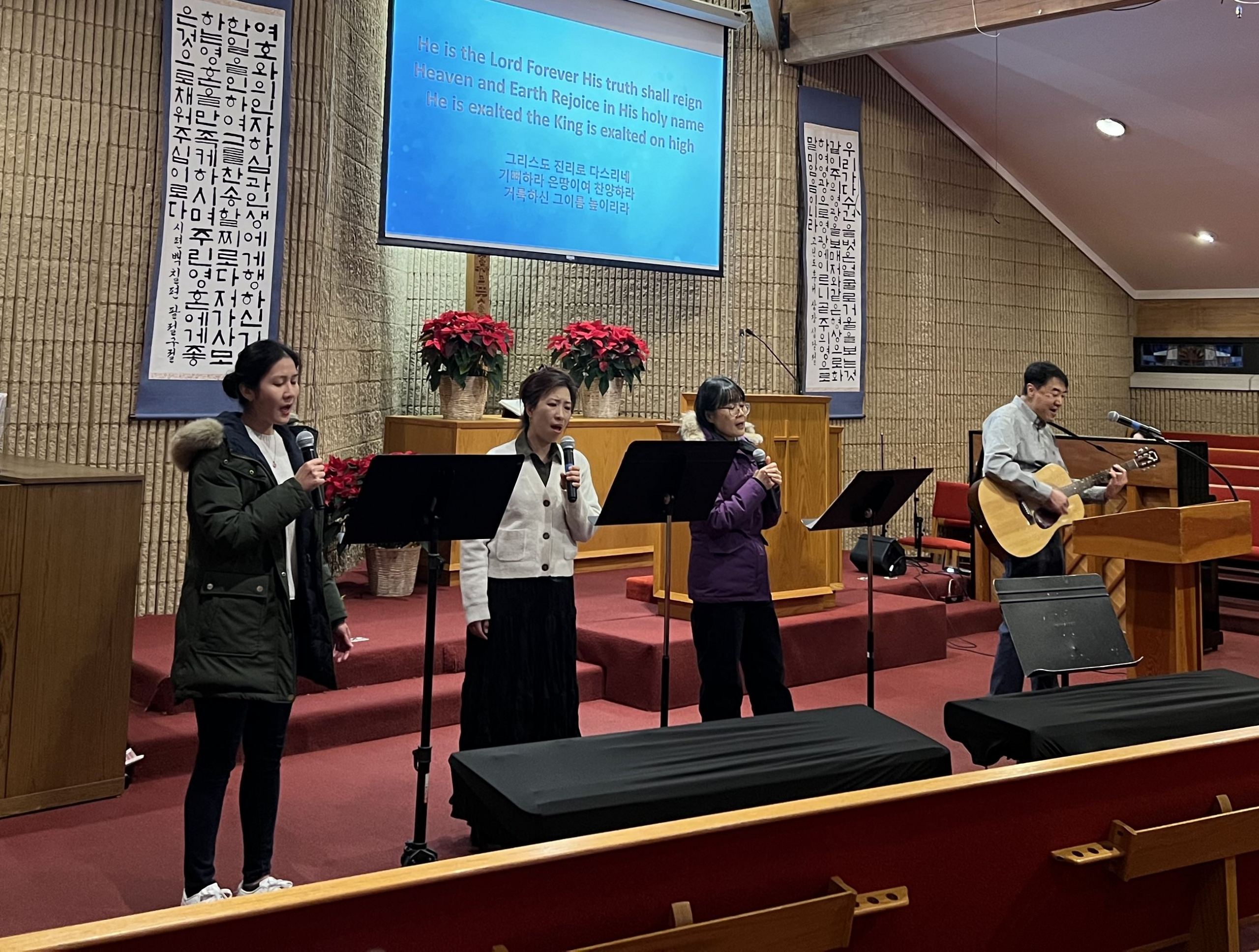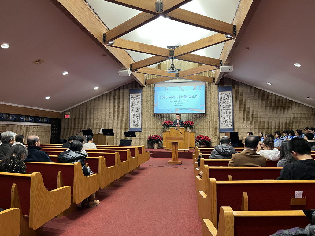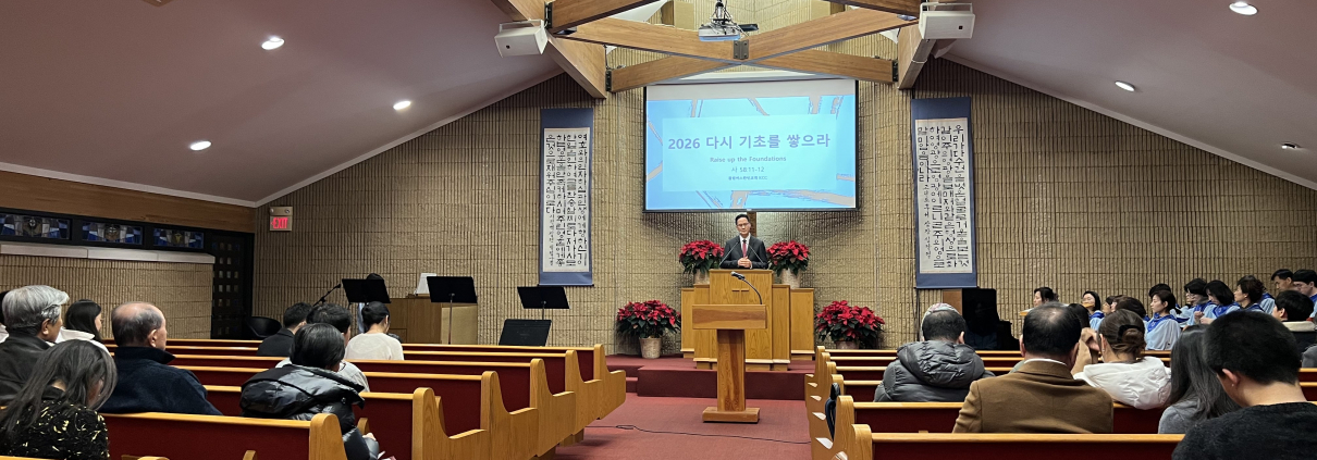 2025년 12월 31일 오후 10시30분 부터 송구영신예배로 모여 찬양과 경배를 올려드렸습니다. 네 성도들의 간증이 이어졌고, 미디어팀에서 준비한 2025년영상을 보면서 한 해동안 공동체 가운데에 부어주신 은혜를 함께 돌아보며 깊고 큰 감사를 올려드렸습니다. 모든 성도가 함께 2026년 새해 카운트다운을 외치며 새해를 맞이하는 가운데 , 2026년 비전 표어인 “다시 기초를 쌓으라” (이사야 58:11-12)” 말씀이 선포되었습니다.